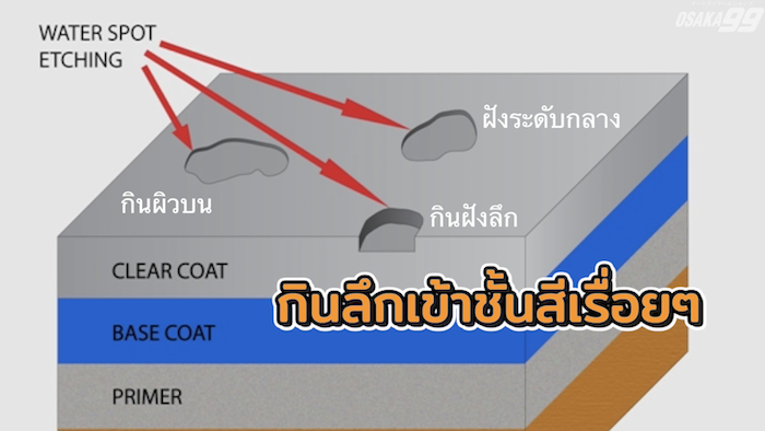 ในระยะยาว ฝนกรดสามารถกัดลึกถึงชั้นเคลือบเงา หรือแม้แต่ชั้นสีแท้ของรถได้เลย