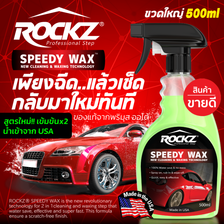 ที่สุดของนวัตกรรมเสเปรย์เคลือบฟิล์มแก้วสีรถยนต์ ROCKZ® Speedy Wax (2in1) ทำหน้าที่ 2 ขั้นตอนในหนึ่งเดียว ง่ายและรวดเร็ว นวัตกรรน้ำยาเคลือบสีรถฟิล์มแก้วให้ความเงาฉ่ำ วาว พร้อมปรับสภาพผิวสีรถให้เรียบ ลื่นขึ้นทันที ขวดใหญ่ 500ml นำเข้าจากประเทศสหรัฐอเมริกา Made in USA